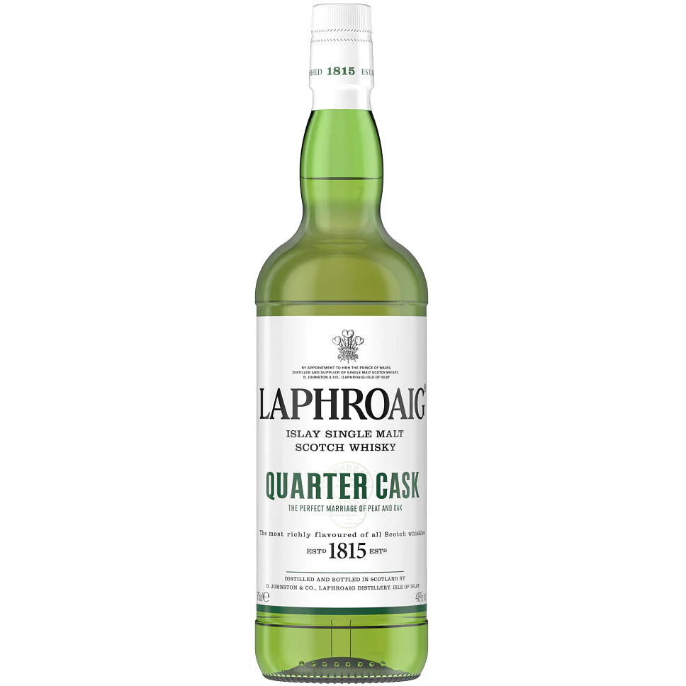 Matured twice in American oak, Laphroaig Quarter Cask presents an irresistible doubling of flavor. Because the second maturation takes place in smaller, quarter-sized casks, the spirit has more contact with wood. This lends hints of coconut, banana and vanilla to the instantly recognizable Laphroaig flavor of smoky peat complemented by a surprising sweetness. It should be enjoyed alone, over ice or with a splash of water to fully pay tribute to the unique flavor. Laphroaig Quarter Cask begins its maturation in ex-bourbon barrels and, while still aging, is transferred to small quarter casks. Aging in smaller barrels revives an old tradition, paying tribute to the master distillers who have perfected the Laphroaig process over two centuries.